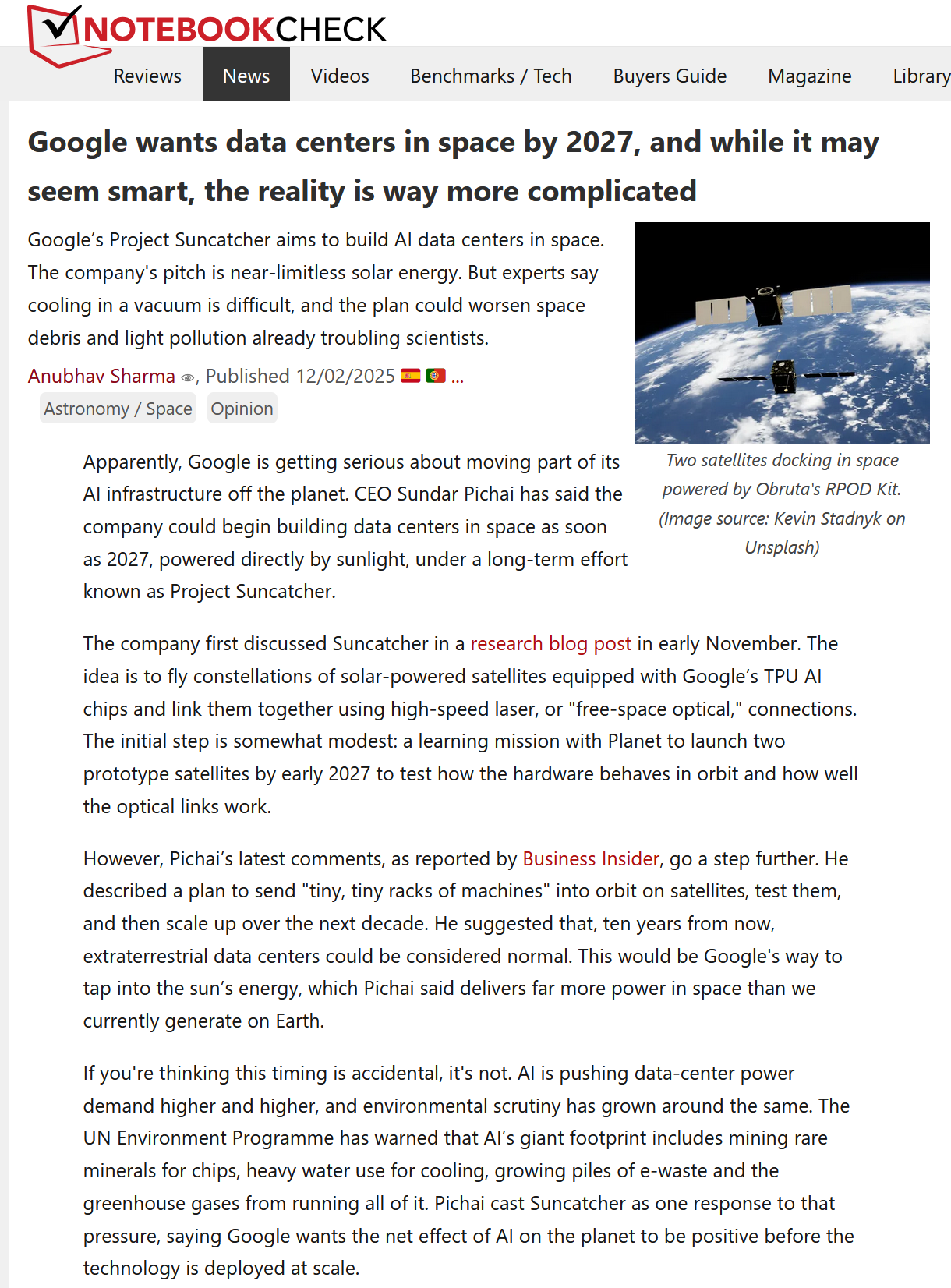 A small feature piece on why Google’s “data centers in space” is far from a good idea
