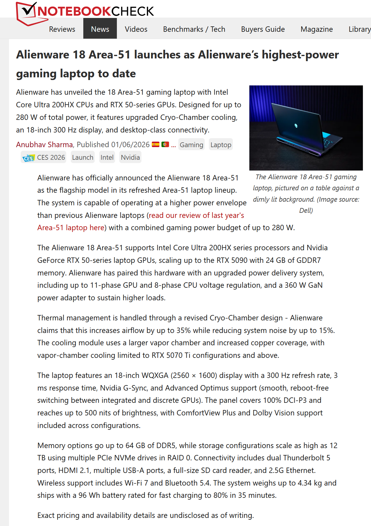 A launch article for Alienware’s new flagship gaming laptop