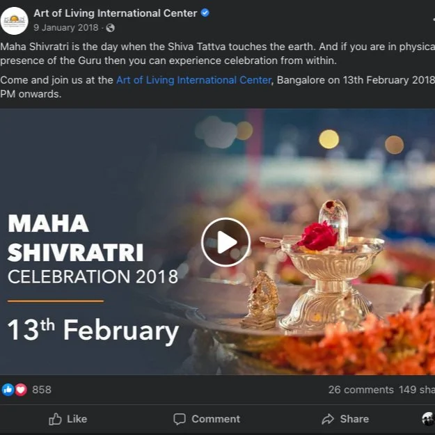 The Mahashivratri Event is one of the biggest events hosted at the International Art of Living Ashram, Bangalore (IN). Thousands of people gather to pray to Lord Shiva, an extremely revered Hindu God.